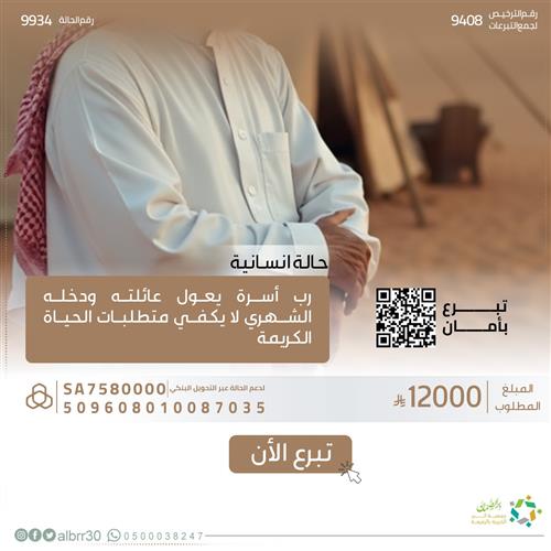 رب أسرة تعتصره ظروف الحياة يعول أسرته دخله الشهري لايكفي متطلبات الحياة الكريمة يحتاج دعمكم لدعم والتبرع للحالة عبر التحويل البنكي بمصرف الراجحي باسم جمعية البر الخيرية بالرفيعة SA7580000 509608010087035